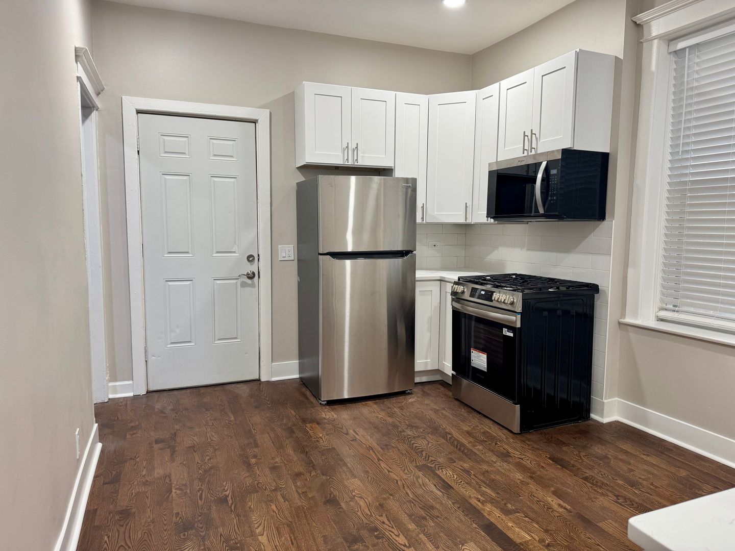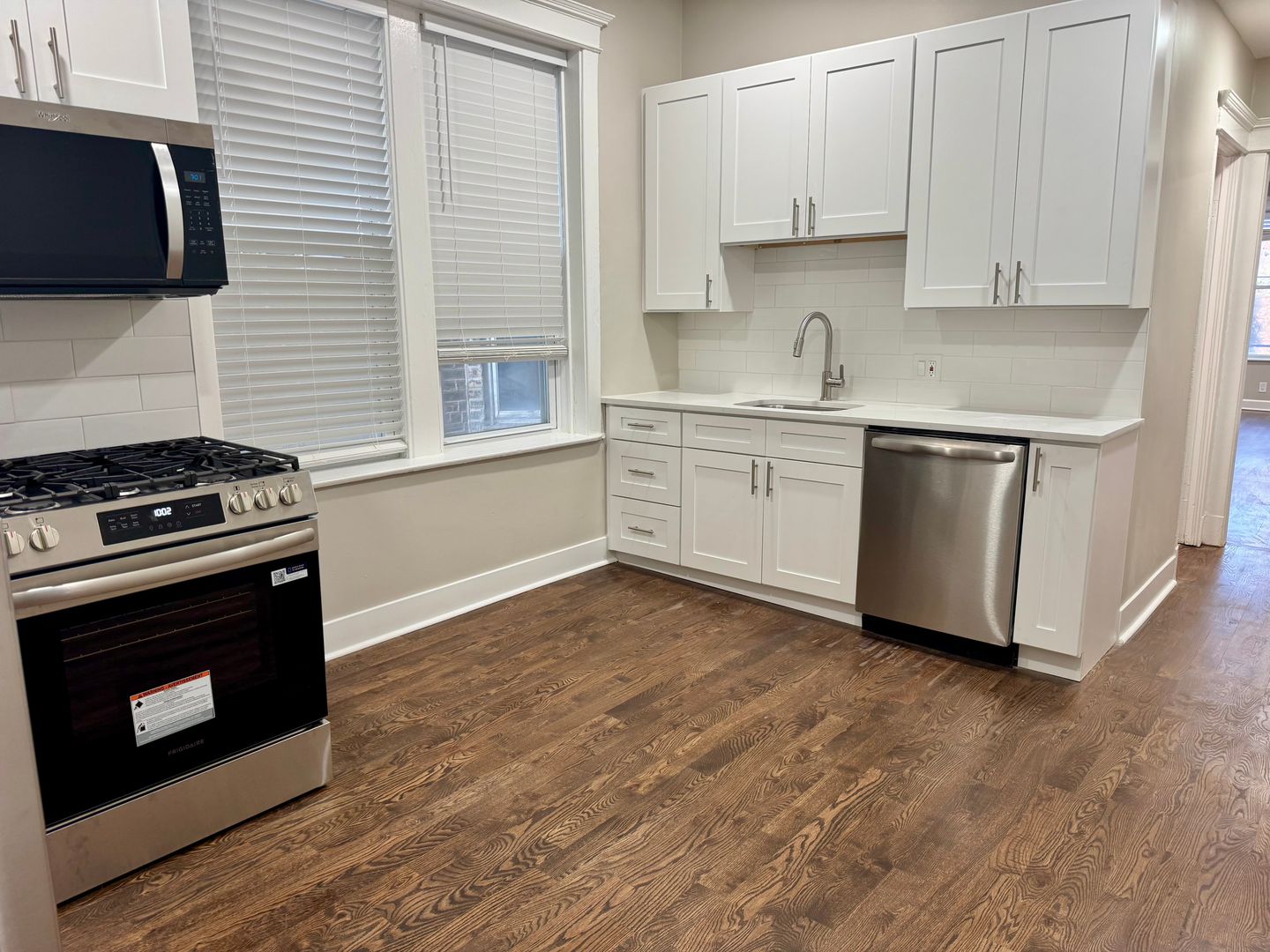 Spacious 3 bed / 2 bath duplex-down in the heart of East Humboldt Park. This home features two full levels of living space, a bright living room with bay windows, a separate dining area, and an updated kitchen on the main floor with stainless steel appliances. One bedroom and a full bath round out the first floor. The lower level offers two bedrooms including an oversized primary bedroom, plus a second full bath and in-unit laundry. Located on a quiet, tree-lined street just steps from Humboldt Park, restaurants, coffee shops, and transit.