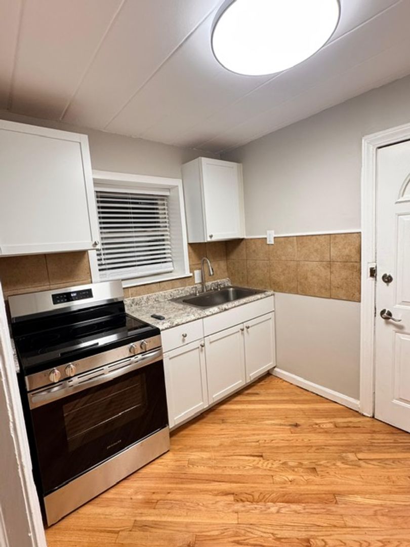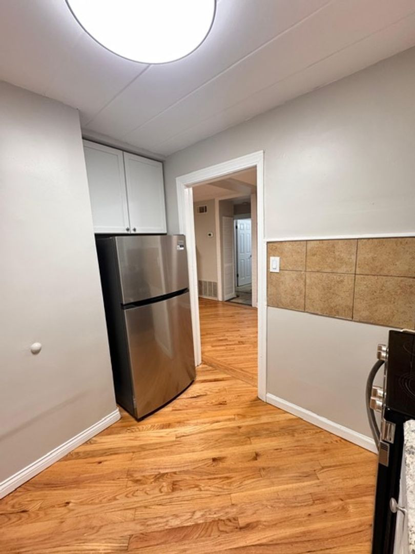 Hardwood flooring throughout the unit except the kitchen. offers a spacious living room, tons of windows for natural lighting, and nicely sized bedrooms.