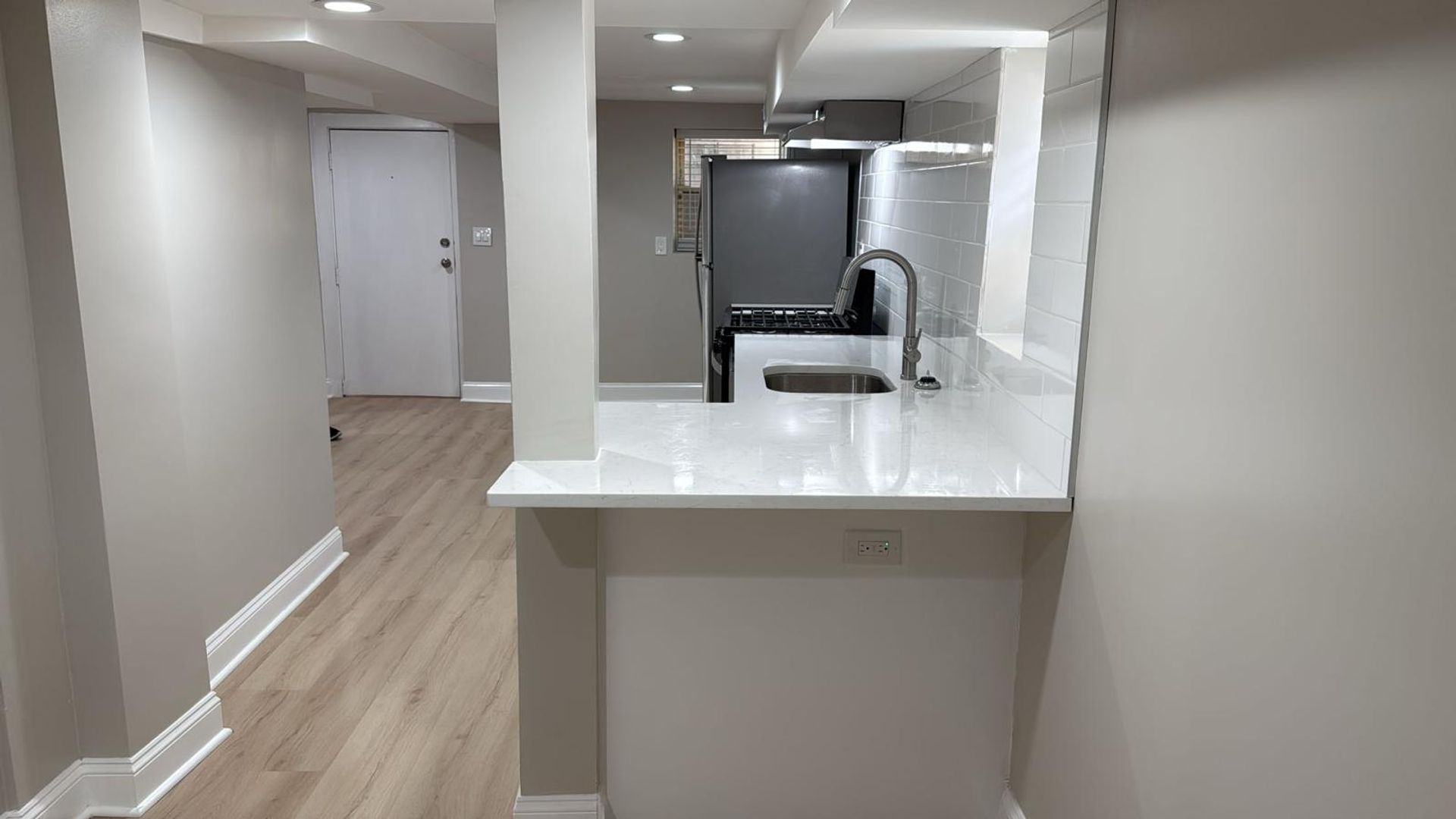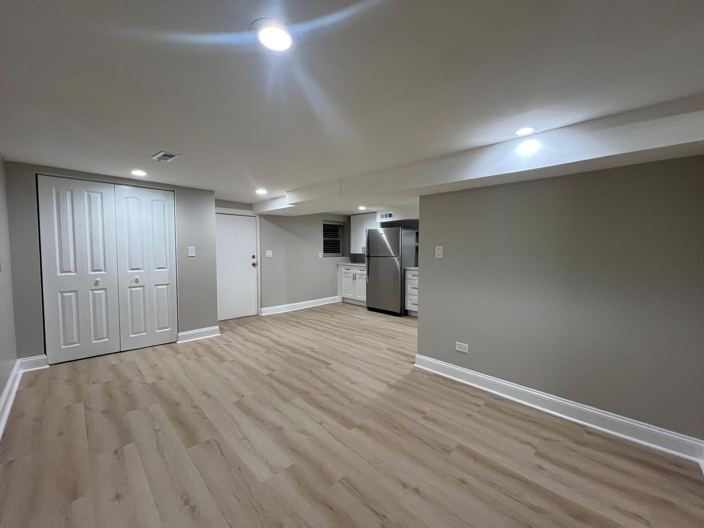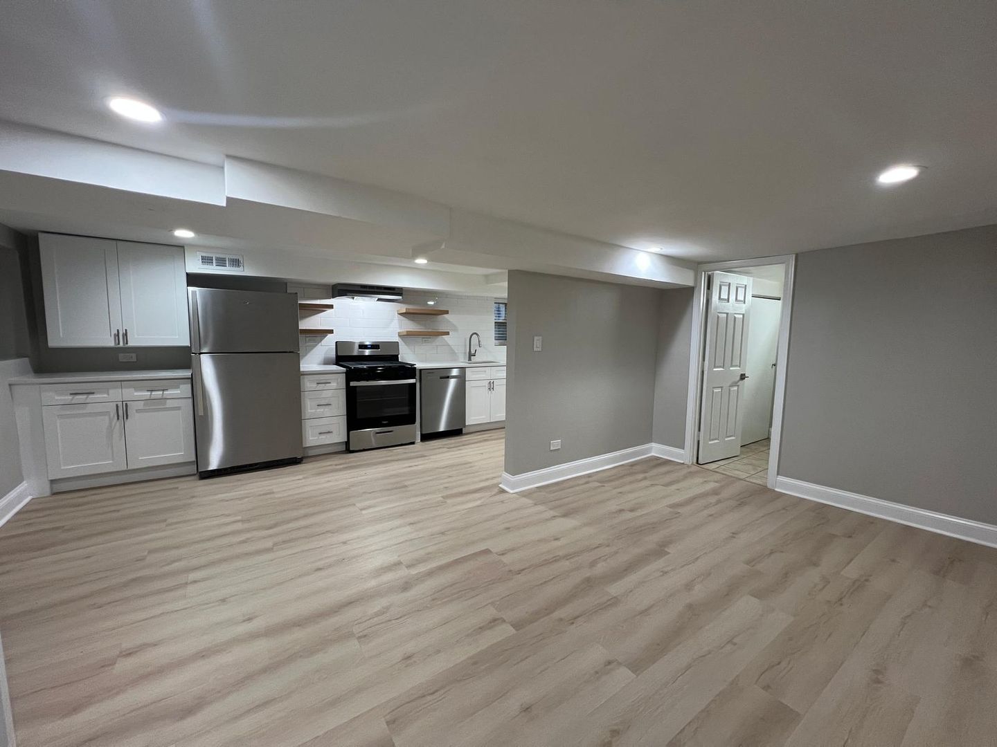 Recently renovated studio apartment in the heart of Humboldt Park! This bright garden unit features modern finishes throughout, wide-plank flooring, recessed lighting, and a sleek white kitchen with quartz countertops, subway tile backsplash, stainless steel appliances, and open shelving. Enjoy the convenience of in-unit laundry, central heat and A/C, and a functional open layout that makes great use of the space. The bathroom includes a full tub/shower combo and updated fixtures. Located just steps from Humboldt Park, this unit offers easy access to local cafes, restaurants, shops, and public transportation.